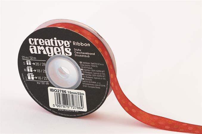 Saténová stuha, 15 mm x 22 m, červená, bodkovaná