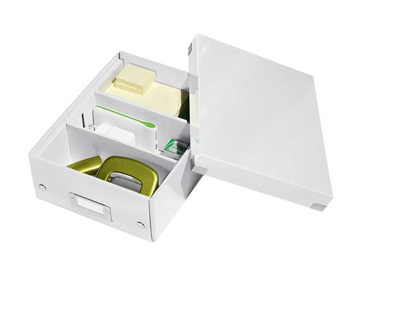 - škatuľu môžete rozdeliť na 2 alebo 3 časti a zabrániť tak zamotaniu káblov alebo miešaniu fotiek a ďalších drobností