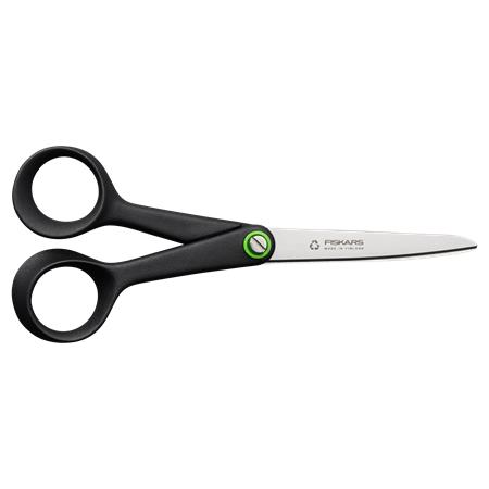 Malé univerzálne nožnice Fiskars Functional Form ReNew sú vyrobené z recyklovaných materiálov (minimálne 70 %) pre jedinečný komfort a výkon pri strihaní