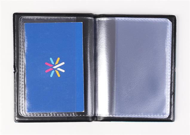 Puzdro na osobné doklady s kapacitou na 16+2+1 preukazy - tvrdý, vzorovaný PVC kryt - stojatý formát - počet listov: 16 - rozmery: 80×103 mm - hmotnosť: 56 g - použiteľné pre typy dokladov: plastový občiansky preukaz, karta trvalého pobytu, plastový vodičský preukaz, študentský preukaz, daňová karta, bankové a kreditné karty, plastové zbieracie a vernostné karty, iné doklady s rozmermi zhodnými s bankovou kartou.