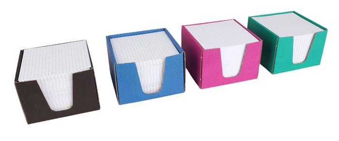 – nelepené, štvorčekové poznámkové bločky s dávkovačom – 100x100 mm poznámkové bločky – farby dávkovača: modrá, zelená, čierna a tmavofialová, farbu nie je možné vybrať – 850 listov