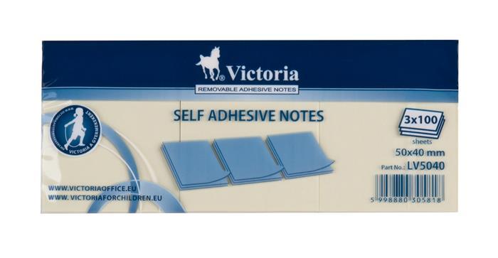 Samolepiaci bloček, 50x40 mm, 100 listov/blok, 3 bloky/bal, VICTORIA OFFICE, žltý