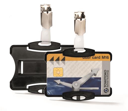 Držiak na identifikačné karty, 54 x 85 mm, s klipom, DURABLE, čierna