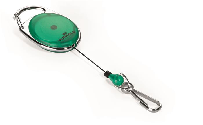 Držiak na identifikačné karty, výsuvný, s karabínou, DURABLE "STYLE", zelená