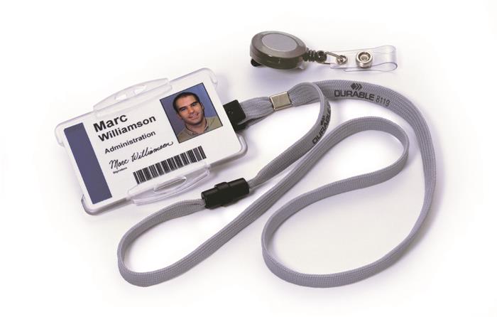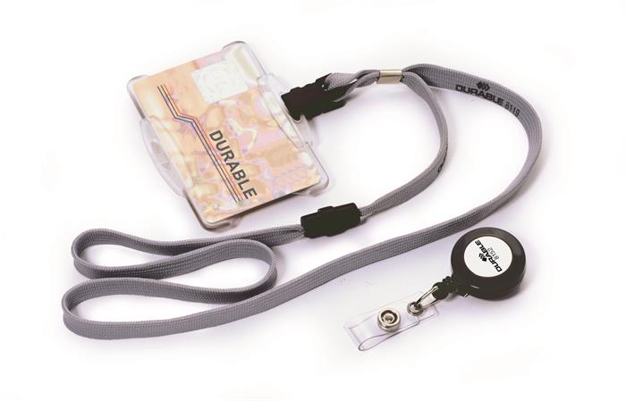 Šnúrka na krk, s klipom, DURABLE, sivá