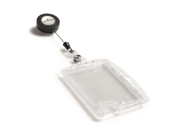 Hlavná stránkaKancelárske potrebyKancelárske doplnkyVisačky, menovkyVisačka na 2 plastové karty, zatvorená, s výsuvným kotúčom, DURABLE