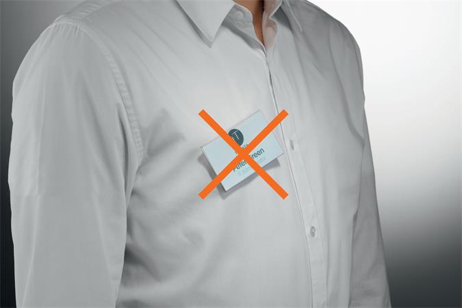 - špecifické zapínanie, ktoré zabraňuje otáčaniu, skĺznutiu alebo uvoľneniu menovky pri nosení