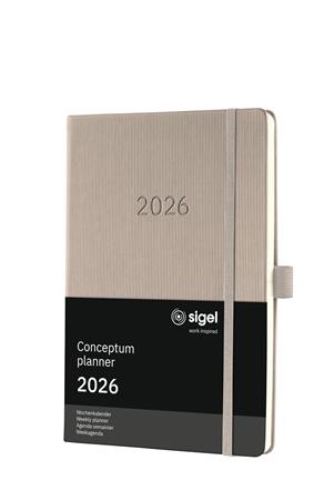 Diár, A5, týždenný, 2026, tvrdá obálka, SIGEL "Conceptum", taupe