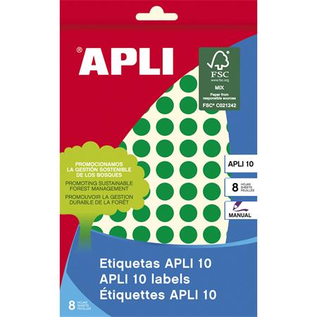 Etikety, okrúhle, priemer: 10 mm, ručne popisovateľné, farebné, APLI, zelené, 1008 etikiet/bal
