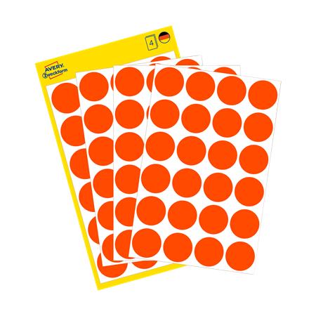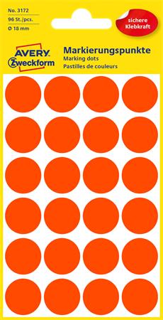 Etikety, okrúhle, priemer: 18 mm, AVERY ZWECKFORM, neónovo červené, 96 etikiet/bal