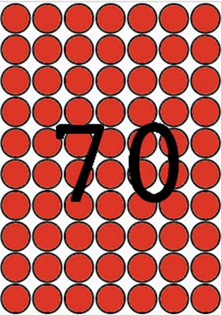 Etikety, okrúhle, priemer: 19 mm, farebné, na liste formátu A5, APLI, červené, 560 etikiet/bal