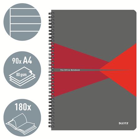 Blok, A4, linajkový, 90 listov, laminovaná kartónová obálka, LEITZ "Office", sivá-červená