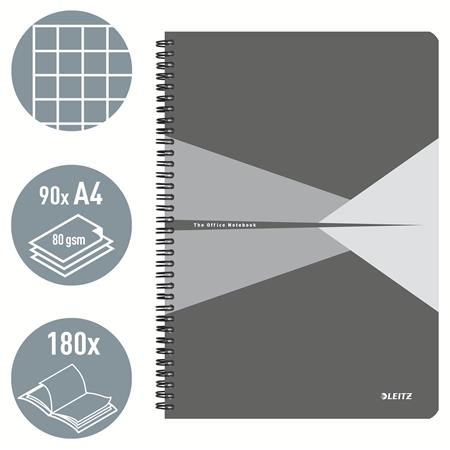 Blok, A4, štvorčekový, 90 listov, PP obálka, LEITZ "Office", sivá