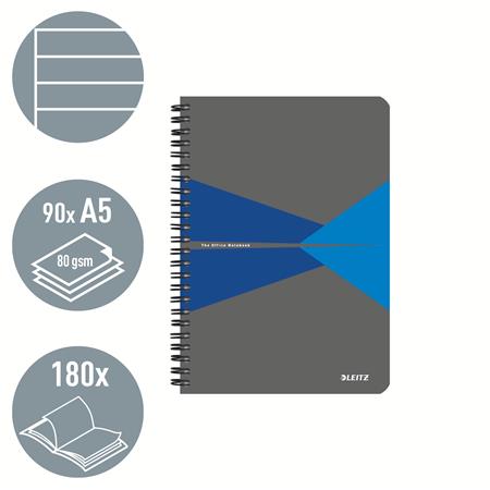 Blok, A5, linajkový, 90 listov, laminovaná kartónová obálka, LEITZ "Office", sivá-modrá