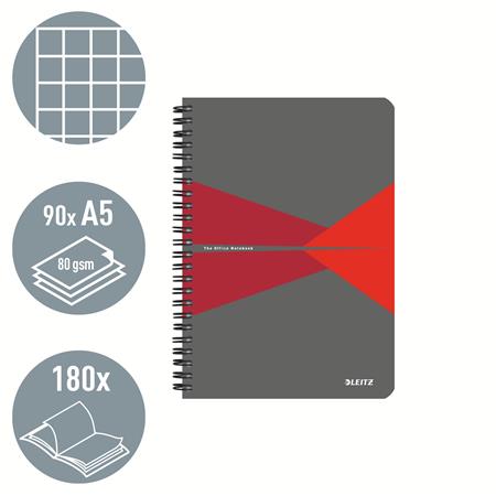 Blok, A5, štvorčekový, 90 listov, PP obálka, LEITZ "Office", sivá-červená