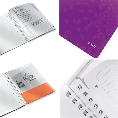 Špirálový zošit, A4, linajkový, 80 listov, LEITZ "Wow", fialový