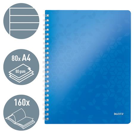Špirálový zošit, A4, linajkový, 80 listov, LEITZ "Wow",  modrý