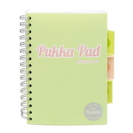 Špirálový zošit, A5, linajkový, 100 listov, PUKKA PAD "Pastel project book", mix farieb