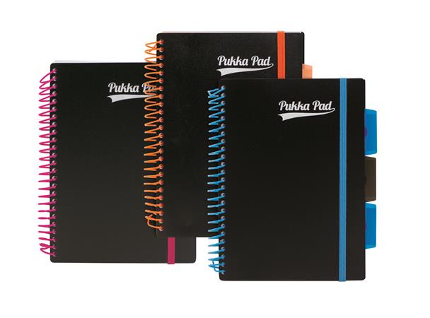 Špirálový zošit, A5, linajkový, 100 strán, PUKKA PAD, "Neon black project book"