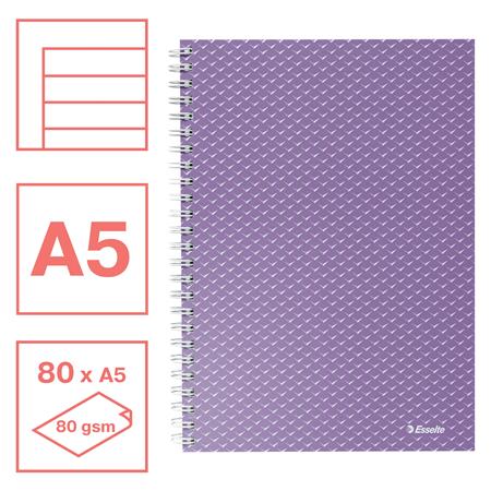 Špirálový zošit, A5, linajkový, 80 listov, ESSELTE  "Colour`Breeze", levanduľový