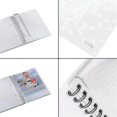 Špirálový zošit, A5, linajkový, 80 listov, LEITZ "Wow", biela