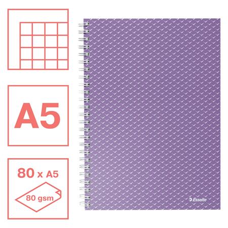 Špirálový zošit, A5, štvorčekový, 80 listov, ESSELTE  "Colour`Breeze", levanduľa