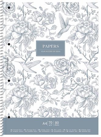 Špirálový zošit, linajkový, A4+, 80 listov, SHKOLYARYK "Vintage flowers", mix