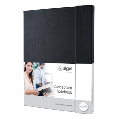 Zápisník, exkluzívny, A4+, štvorčekový, 97 strán, s magnetickým zatváraním, SIGEL "Conceptum", čierna