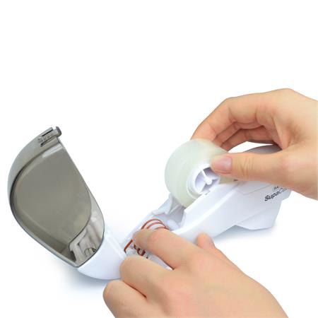 Hlavná stránkaKancelárske potrebyKorekcia a lepenieLepiace pomôckyDispenzor na lepiacu pásku, RAPESCO „SupaCut”, biely