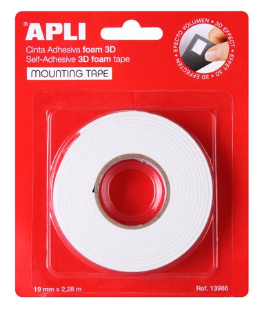 Lepiaca páska, rolka, 3D, obojstranná, pena, APLI, 19 mm x 2,28 m, biela