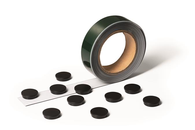 Kovová páska, samolepiaca, 3,5 cm x 5 m, DURABLE, biela, s 10 magnetmi