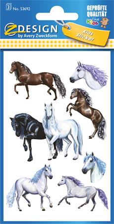 Nálepky, papier, 3 hárky, 76x120 mm, AVERY ZWECKFORM, "Z-Design No.53692", kreslené kone