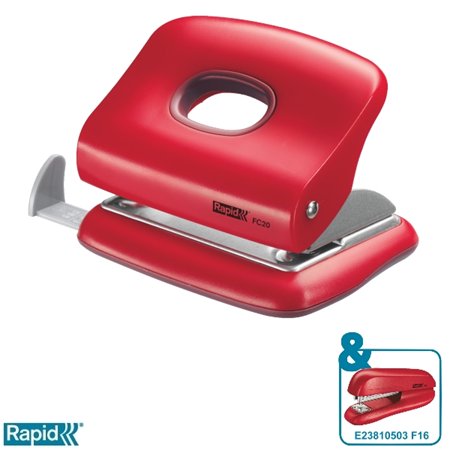 Hlavná stránkaKancelárske potrebyMalé kancelárske zariadeniaDierovačkyDierovačka, 2 dierky, 20 listov, RAPID "FC20 Fashion", červená