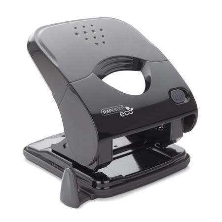 Dierovačka, 2-dierová, 40 listov, uľahčené dierovanie, antibakteriálna, RAPESCO "ECO-X5", čierna