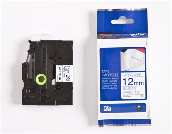 Páska do štítkovača, nažehlovacia, 12 mm x 3 m, BROTHER, biela-modrá