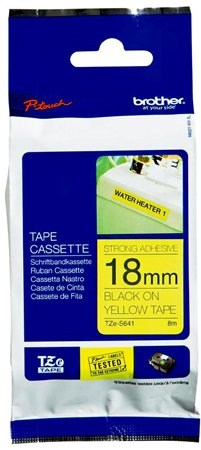 Páska do štítkovača, silné prilepenie, 18 mm x 8 m, BROTHER, žltá-čierna