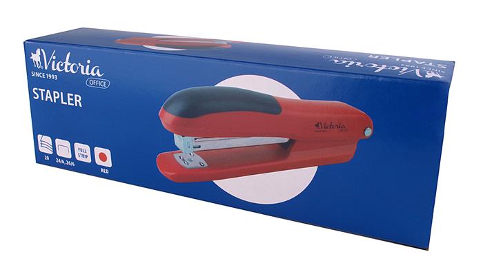 Zošívačka, 24/6, 26/6, 20 listov, VICTORIA OFFICE, "Full-Strip", červená