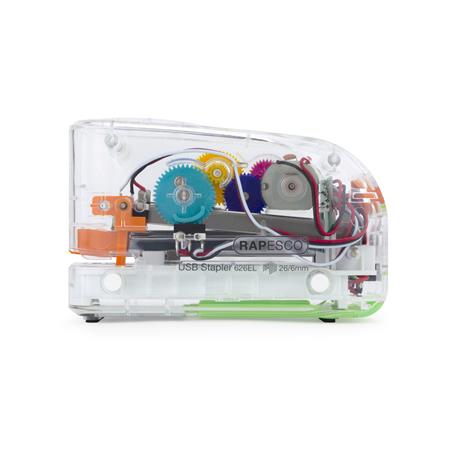 Zošívačka, 26/6, 15 listov, elektrická, s USB nabíjačkou, RAPESCO "626EL", priehľadná