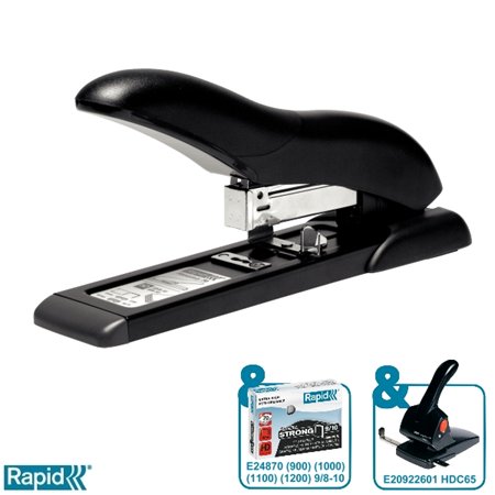 Zošívačka, veľkokapacitná, 9/8, 9/10, 70 listov, RAPID "HD70 Fashion", čierna/sivá