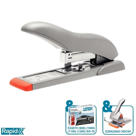 Zošívačka, veľkokapcitná, 9/8, 9/10, 70 listov, RAPID "HD70 Fashion", strieborná/oranžová