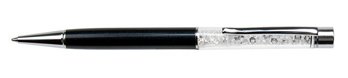 Guľôčkové pero, s bielym krištáľom SWAROVSKI®, 14 cm,  ART CRYSTELLA, čierna