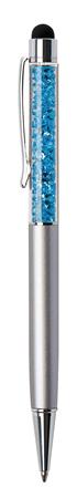 Guľôčkové pero, strieborné, vrch plnený aqua modrým SWAROVSKI® krištáľom, dotykové, 14 cm, ART CRYSTELLA®