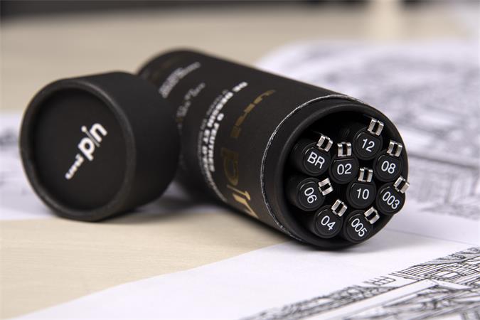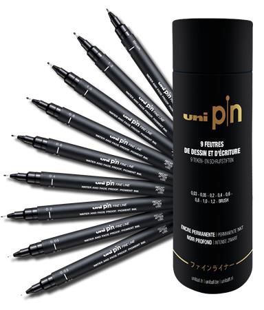 Popisovače, sada, UNI PIN "Tube", 9 rôznych hrúbok čiar, čierna