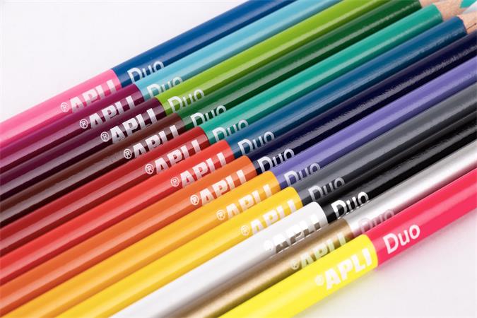 Farebné ceruzky, sada, obojstranné, trojhranné, APLI "Duo", 24 rôznych farieb