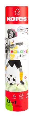 Farebné ceruzky Kolores Twist & Turn vo valcovitom balení s darčekom: strúhadlom a grafitovou ceruzkou.