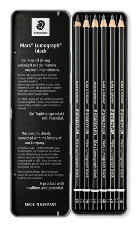 Grafitová ceruzka, sada, šesťhranná, kovová škatuľa, STAEDTLER "Mars Lumograph 100B", 6 druhov tvrdosti, čierna