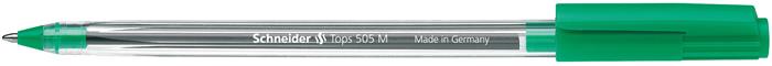 Guľôčkové pero, 0,5 mm, s vrchnákom, SCHNEIDER "Tops 505 M", zelené