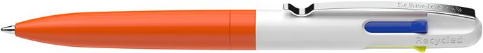 Guľôčkové pero, 0,5 mm, stláčací mechanizmus, 4 farby, SCHNEIDER "Take 4 Neon", oranžové-biele
