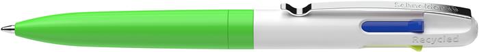 Guľôčkové pero, 0,5 mm, stláčací mechanizmus, 4 farby, SCHNEIDER "Take 4 Neon", zelené-biele