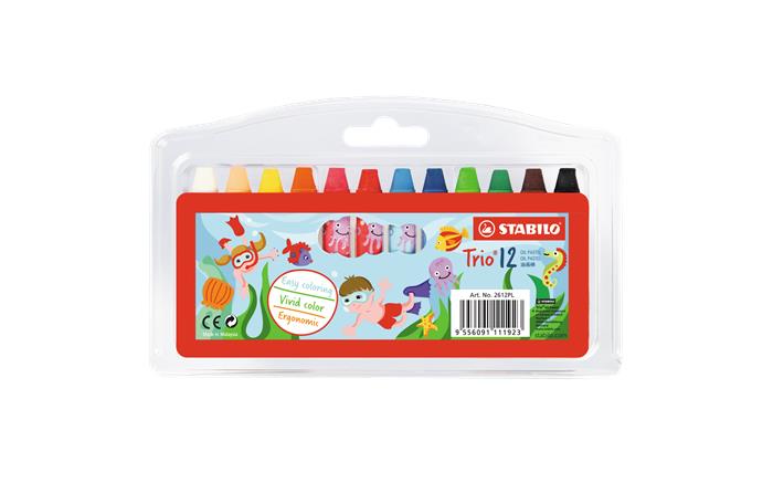 Olejové kriedy, STABILO, 12 rôznych farieb